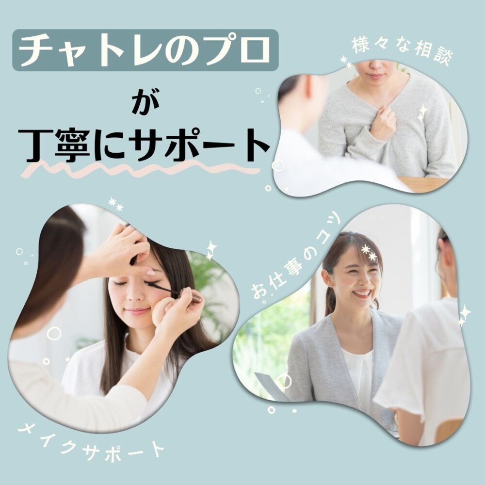 登録からお仕事開始まで、チャトレ経験豊富な女性スタッフが丁寧に対応します。不安や悩みもいつでも相談OK!